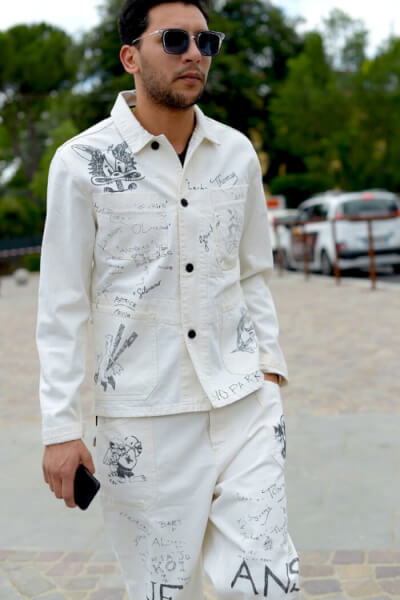 Like this hand-drawn, white button down and slacks combo: