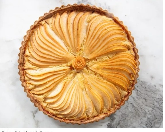 Cook: Pear and almond tart that feels as graceful and composed as you aim to be this season.