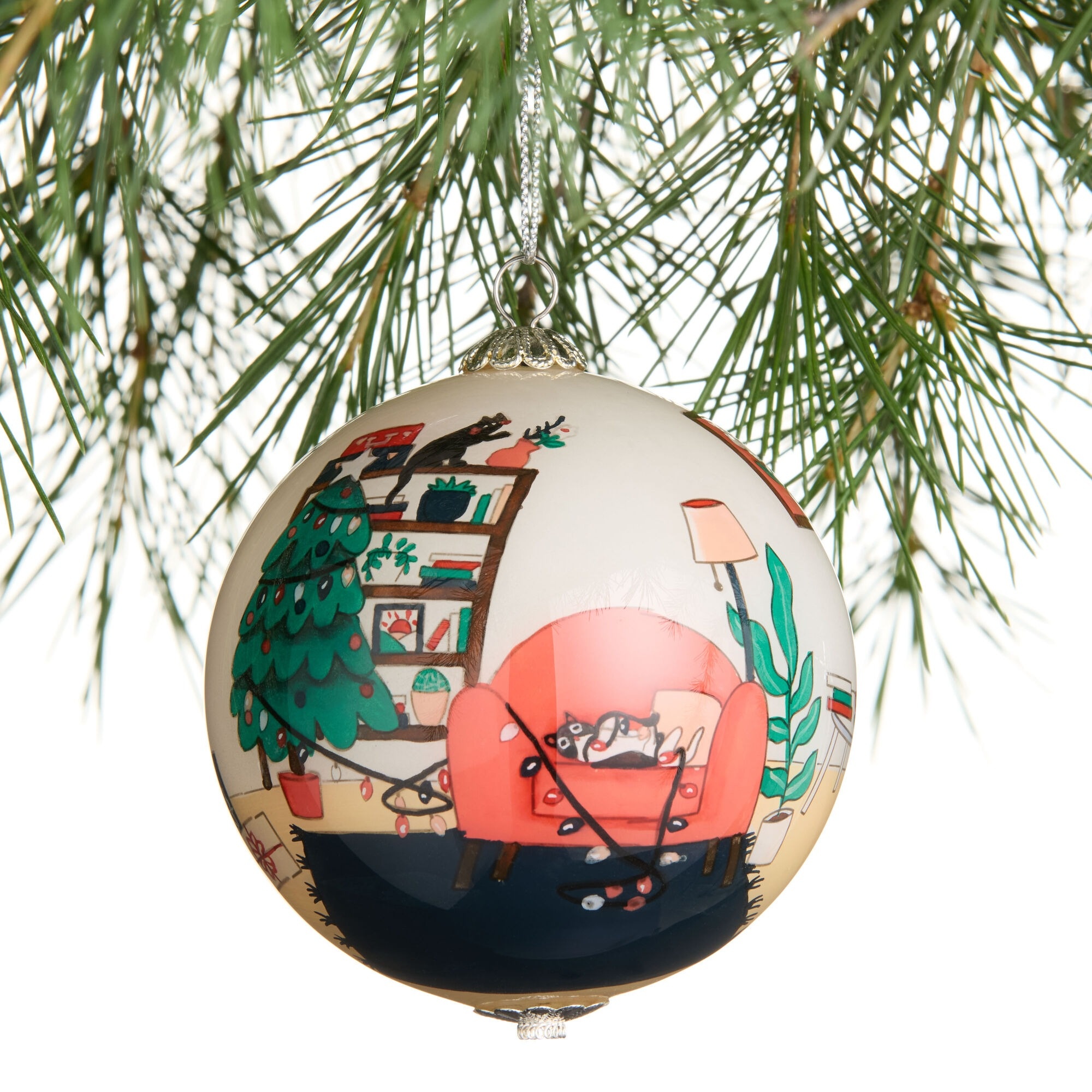 3. Li Bien Cream Christmas Cats 2025 Glass Ball Ornament